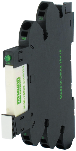 Plug-in miniature solid-state relay with 1 N/O conatct. Input voltage: 24 VDC. Output voltage: 3VDC… 33VDC. Limiting con