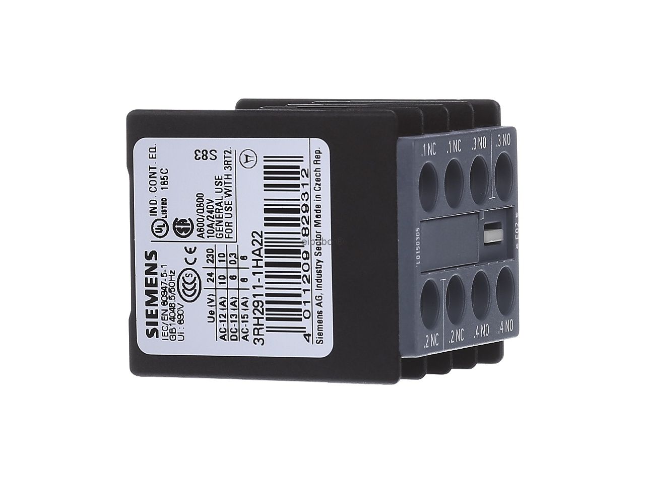 4 pole, screw terminal, for motor contactors. 2NO,2NC. Operational voltage: 230VAC. Operational c urrent: Max. 10A.